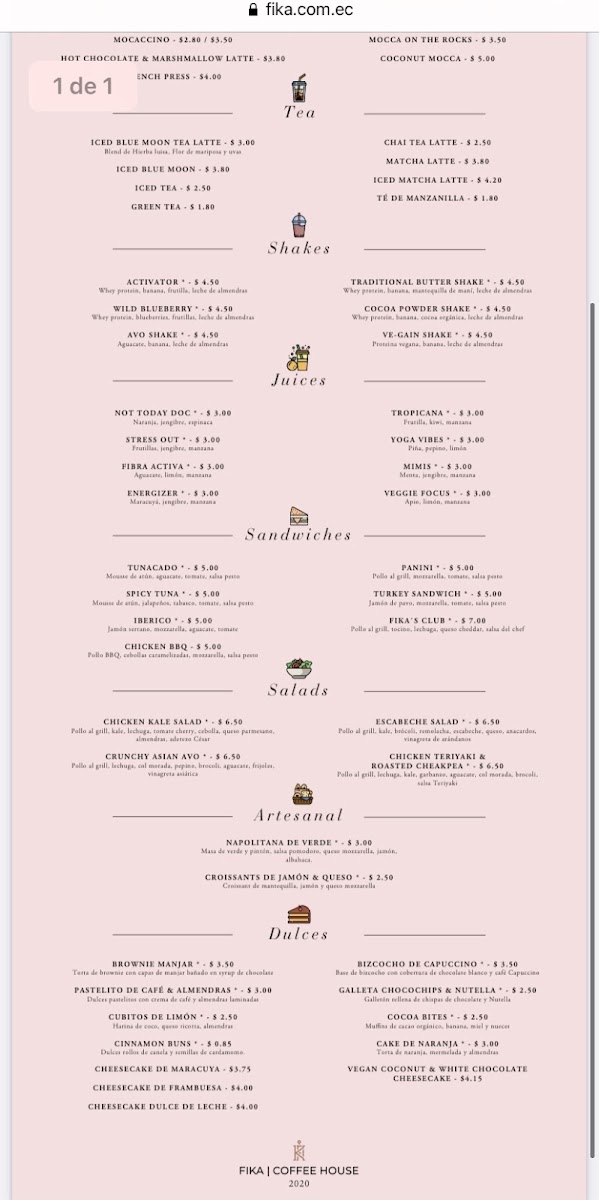 Welcome to Fika Coffee House, a delightful cafeteria located in the SATELlTE CENTRO COMERCIAL BUENA VISTA, Samborondón. Their menu is a carefully curated selection designed to please diverse palates.